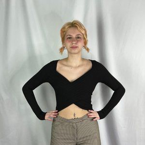 Urban Outfitters Black Long Sleeve Crossover Sweater
