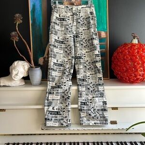 Stylish flare pants with a bold graphic print. Perfect for a trendy look.