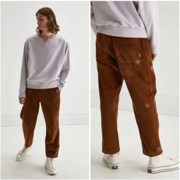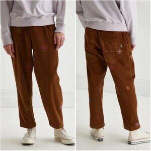 Urban Outfitters Brown Corduroy Beach Pant Floral Embroidered Ankle Crop Small