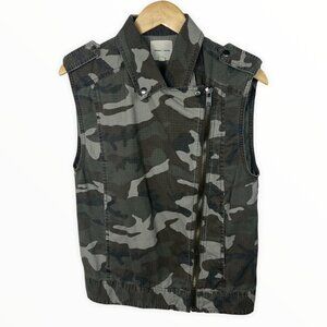 Urban Outfitters Silence + Noise Embroidered Camo Moto Vest in Green and Women's Size XS. Retails for $79 USD approximately $110 CAD). 100% cotton. Zipper closure. Front pockets. Embroidered floral patchwork on the back. Excellent like new condition. No visible flaws.