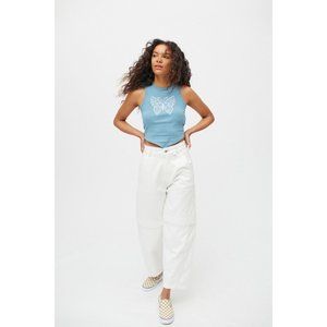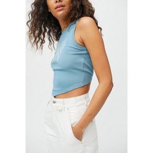 Urban Outfitters Crop Top XL Butterfly Open Back Tie Back Tank Teal Blue