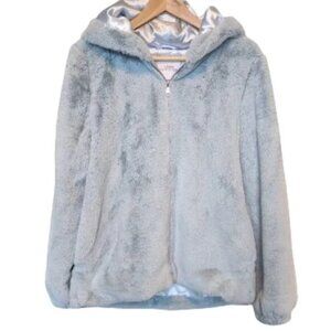 Urban Outfitters Faux Fur Baby Blue Hooded Zip Up Jacket
