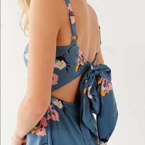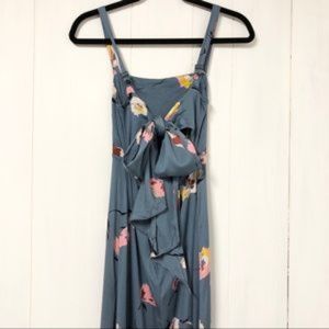 UO Layla Floral Print Straight-Neck Tie-Back Blue Midi Dress Size XS