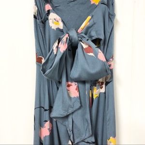 Urban Outfitters Floral Print Straight-Neck Tie-Back Blue Midi Dress Size XS