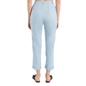 Simply classic linen pant from Urban Outfitters. Made from a lightweight linen in a slim cut, high rise construction that's relaxed fit through the leg all the way to the cropped, cuffed ankle. Topped with a button-zipper fly + side entry pockets at the hips. Finished with darted detailing at the waistline.