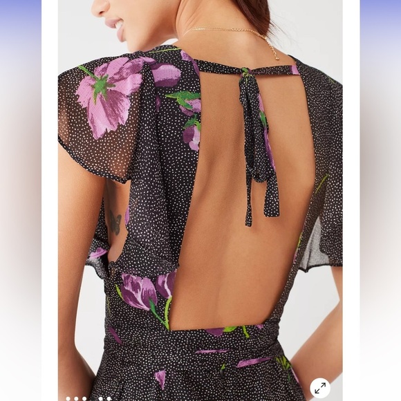 Urban Outfitters Gratilda Ruffle Black Purple Floral Print backless Jumpsuit 2