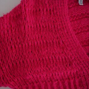 Urban Outfitters Hot Pink Chunky Knit Cardigan Bubble Sleeve Bold Barbie XS