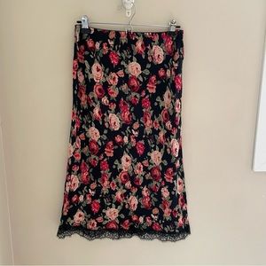 Urban Outfitters Kimchi Blue, Floral Lace Trim Hem Skirt, elastic waistband, 100% Rayon, NWT