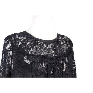 Urban Outfitters Kimchi Blue Womens S Black Flowy Long-Sleeve Lace Trapeze Dress