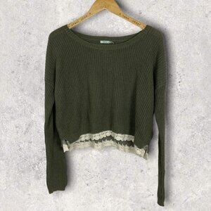 Urban Outfitters Kimchi Blue Green Lace Trim Pullover Knit Sweater in Women's Size Medium.