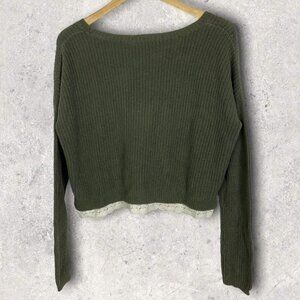 Urban Outfitters Lace Trim Crop Knit Sweater Green White Size Medium Bohemian M