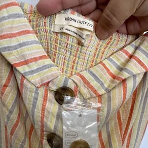 Urban Outfitters Linen Blend Button Down Stripe Billie Romper