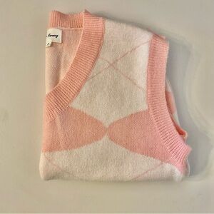 Urban Outfitters Love + Harmony Pink & White V-Neck Sweater Vest