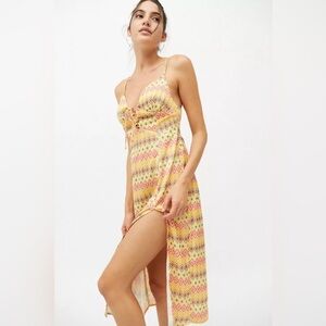 Urban Outfitters Mariah Lace Up Yellow Print Midi Slip Dress