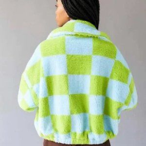 Urban Outfitters Olivia Blue Green Mod Checkered Sherpa Jacket. Unworn. Size XS