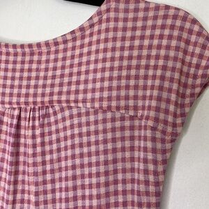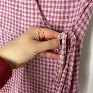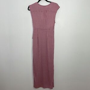 Chic pink gingham maxi dress. Sleeveless with a wrap design. Perfect for casual outings.