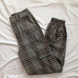 Urban Outfitters Plaid Cargo Jogger Pants High Rise Gray and Orange 26" Crop XS