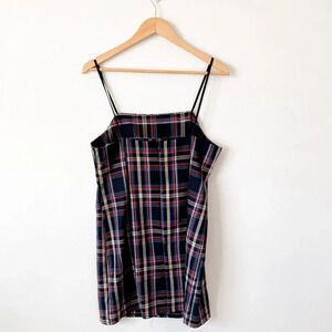 Urban Outfitters Plaid Check Square Neck Mini Dress Navy Red Sz L