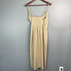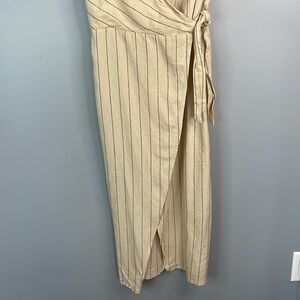 Urban Outfitters Quebec Beige Stripe Linen Blend Side Tie Midi Wrap Dress Size M