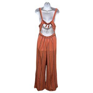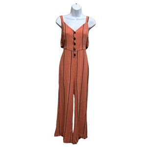 Urban Outfitters Red Clay Striped Linen Blend Jumpsuit Size M