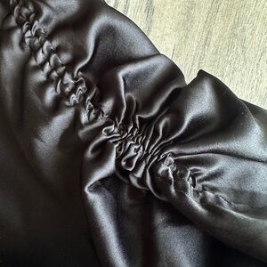 This elegant black satin skirt is perfect for any occasion. Its sleek design offers a sophisticated look. A must-have addition to your wardrobe.