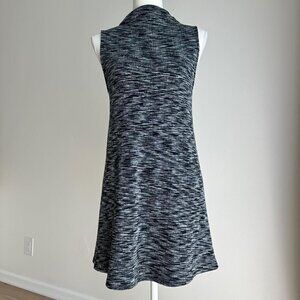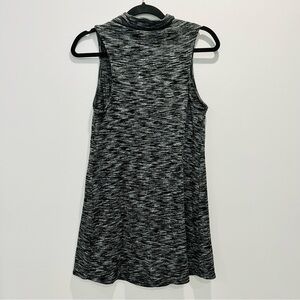 Beautiful dark acadamia/twee high neck/mock neck sleeveless knit mini dress from Urban Outfitters (brand is Silence & Noise) in excellent preowned condition, only worn a handful of times, no flaws, size small. Love the heathered grey/black knit mix and trapeze/swing/A line silhouette. So easy to layer with long sleeve tops for winter or under a peacoat with some tights. Lightweight enough to keep you warm for fall but thin enough to be layered in the winter without adding any extra bulk!