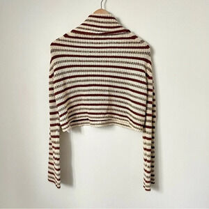 Urban Outfitters Stripped Cropped Turtleneck Sweater. Cream and brown strip. Lightweight crochet knit. Cotton and acrylic blend. Size small. Excellent condition.