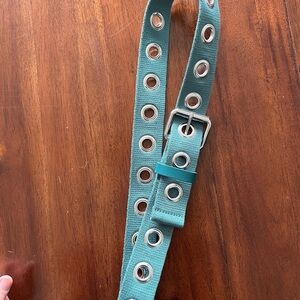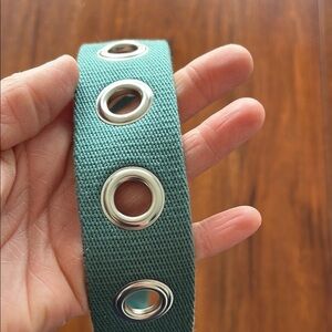 Stylish teal belt with silver grommets and buckle. Perfect for adding a pop of color. 37 inches size medium new turquoise
