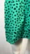 Stylish teal mini dress with black spots. Features a wrap design and puff sleeves.