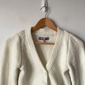 Urban Outfitters UO Soft Chenille Cropped Button Front Cardigan White Size Small