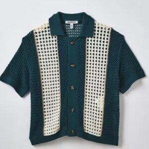 Urban Outfitters Unisex Teal & Cream Crochet Cardigan Size Medium Retro Style
