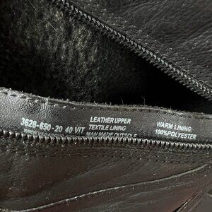 Composition: Leather upper, lined interior for warmth, & a rubber sole