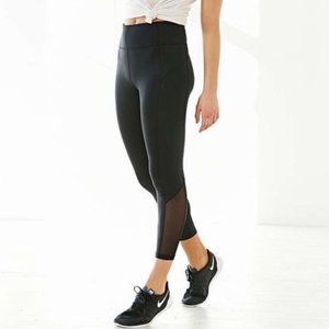 Urban Outfitters Without Walls black running leggings with high waist and sheer mesh side panels at ankles. 7/8 length depending on height. Small hidden pocket on front of waist. Quick drying, moisture wicking polyester/spandex construction. Like new condition.