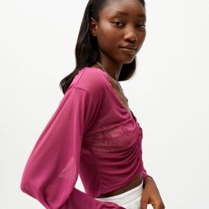 Urban Outfitters Women's UO Cara Mesh Ruched Blouse Purple
