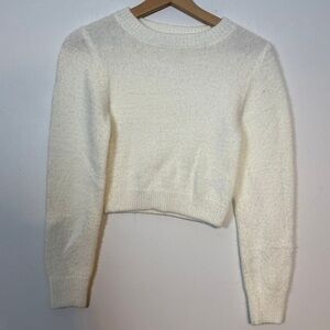 Urban Outfitters Women’s White Cropped Fuzzy Sweater Size Small