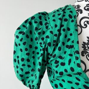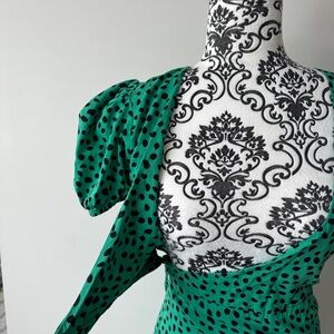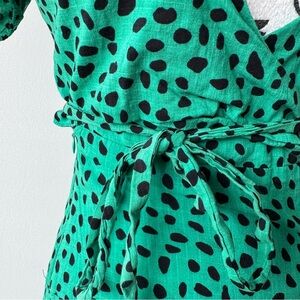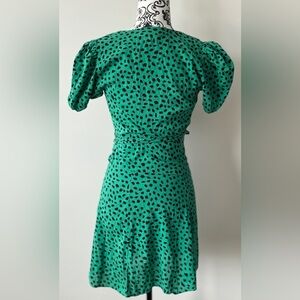 Urban Outfitters Wrap Puff Sleeve Mini Dress Green Black Spotted S