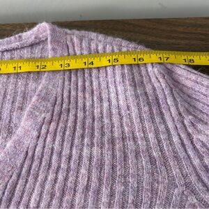 Cozy lavender knit sweater. Features a soft texture and elegant design.