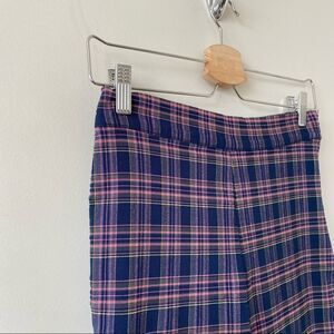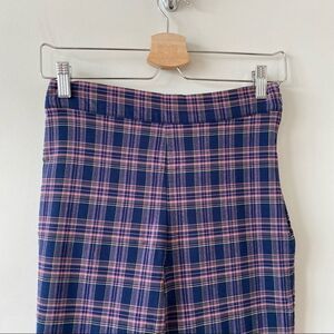 Urban Outfitters-Plaid Navy Pink Yellow Kick Flare Ankle High Rise Pants