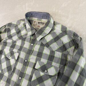 Urban Pipeline Pearl Snap Button-Down Checkered Plaid Western Shirt Large