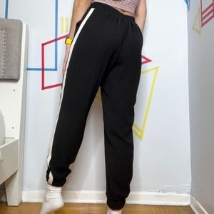 Black joggers with white stripe. These were originally pants that I turned into joggers.