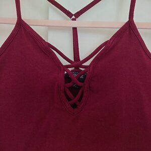 Urban Planet Burgundy Lace Up V-Neck Crop Top in S