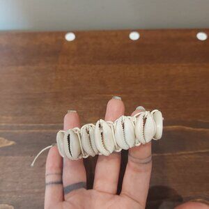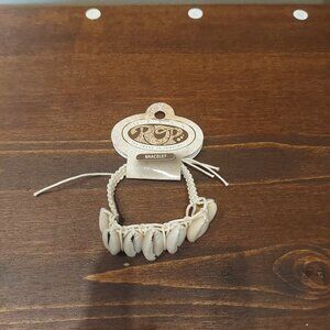 Corded Cowrie Shell bracelet is dotted with natural shells for a boho look. Finished with an adjustable braded band fit for a comfortable feel.