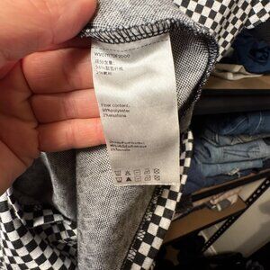 🧵 Details: Size Large, black & white checker pattern, snap-button front, collared neckline, thicker stretchy fabric, grunge, indie sleaze, punk, skater girl,