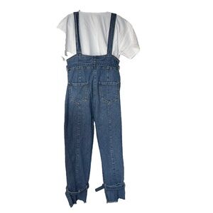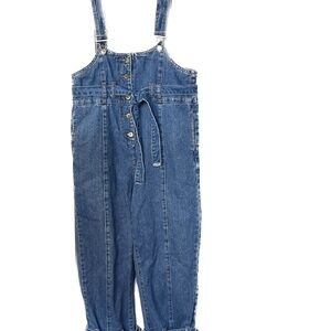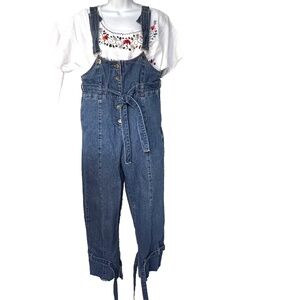 Urban Revivo Jeans Bib Blue Medium Wash Denim Tie Leg Size 12 Belt 100% Cotton