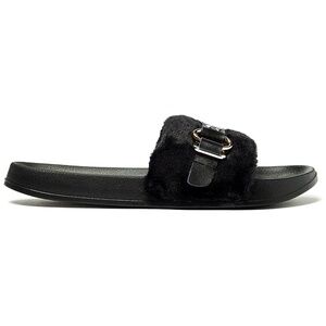 J SLIDES Urban Sport Faux Fur Eva Buckle Up Shoes Sandals Black NIB