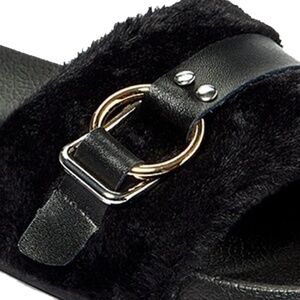 J SLIDES Urban Sport Faux Fur Eva Buckle Up Shoes Sandals Black NIB