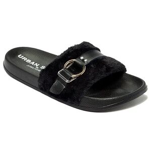 π©΄ Adorable slides by Urban Sport / J Slides. Soft faux fur adds slip-on comfort and chic to this sunny day-ready strider boasting an EVA footbed to help cushion the step while you walk from street to deck chair.
