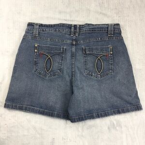 Urban Star Jean Shorts. Women's Size 16. Cotton / lycra. Medium wash. Hemmed. Two button tab closure.