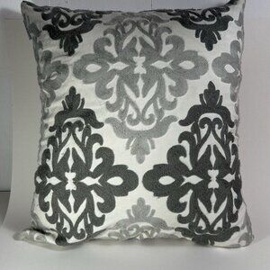 Urban barn Embroidery Pillow Cover 18x18 Grey White Charcoal Boho