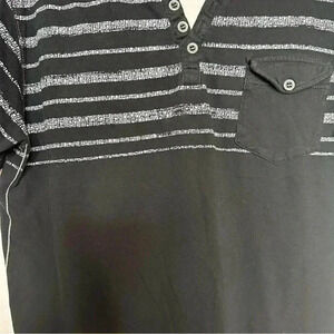 Urbanology T-Shirt Buttons Front Pocket Stripes Black & White Size Medium